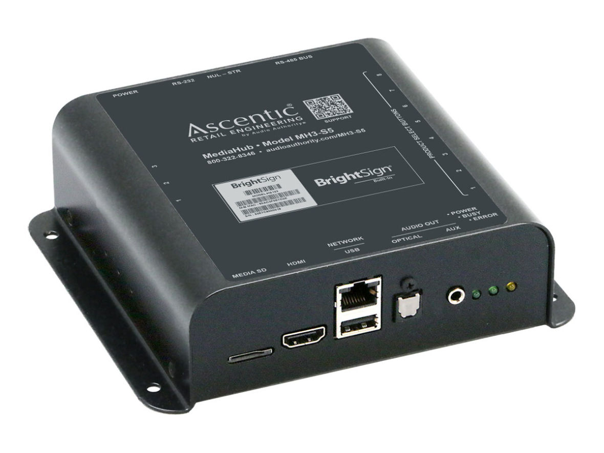 | Interactive HD Demonstrator The Model MH3-S5 combines BrightSign’s media-playing muscle with the interactivity you expect from Audio Authority®. With a BrightSign digital signage module built-in, the MH3-S5 produces flawless 4K@30 video and uncompressed audio, with all the custom capabilities made possible by BrightAuthor software.